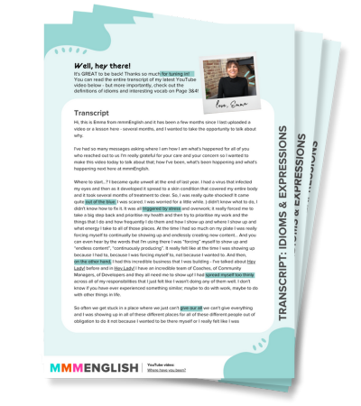 Thanks for watching my new video! I created a transcript for you, including the definitions of interesting idioms & expressions I used throughout the video. Enter your details and I'll send you the PDF!